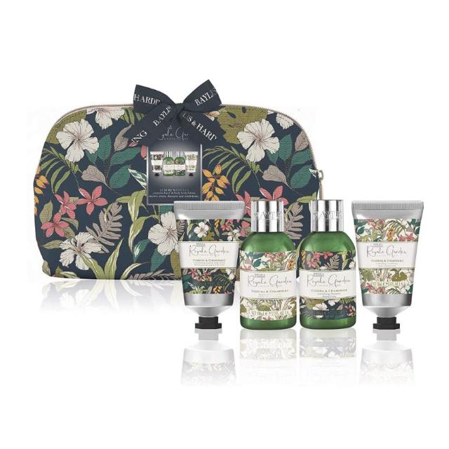 Baylis & Harding Luxury Toiletry bag gift set . Beautiful wash bag adorned with a stunning floral desgin. Contains travel essentials including 100ml shampoo, 100ml shower cream, 50ml body lotion. Rose, poppy and Vanilla scented. Perfect gift set.